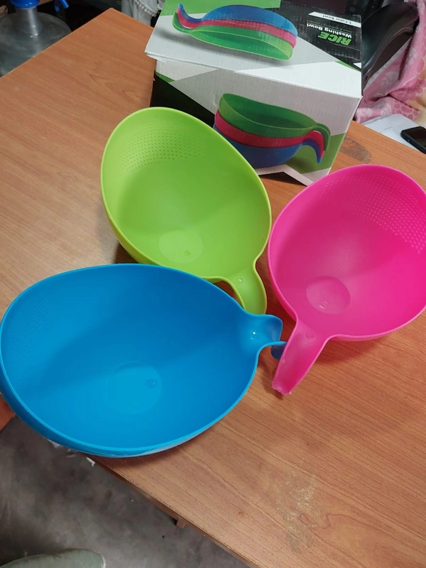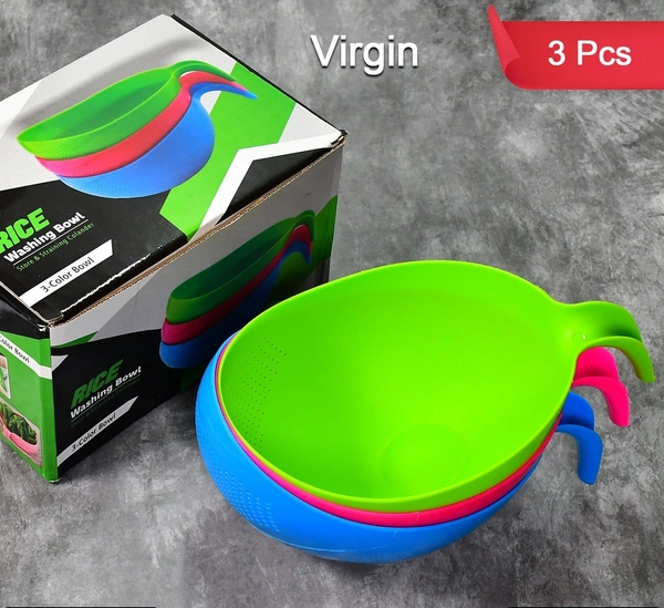 2068 PLASTIC RICE BOWL/FOOD STRAINER THICK DRAIN BASKET WITH HANDLE FOR RICE, VEGETABLE & FRUIT (SET OF 3PCS)