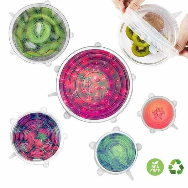 2154 SILICONE STRETCH LIDS REUSEABLE MICROWAVE SAFE FLEXIBLE COVERS (SET OF 6) (LOOSE PACK)