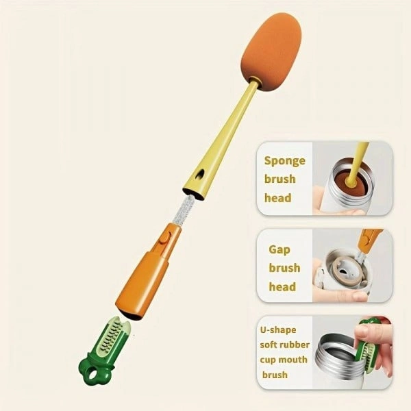 3-In-1 Multifunctional Long Handle Cup Brush Sponge Radish Cleaning Brush Kitchen Cup Milk Bottle Groove Cleaning Tool