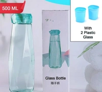 5213 GLASS FRIDGE WATER BOTTLE PLASTIC CAP WITH TWO WATER GLASS FOR HOME & KITCHEN USE