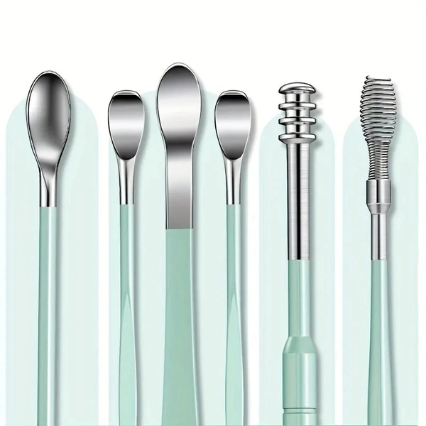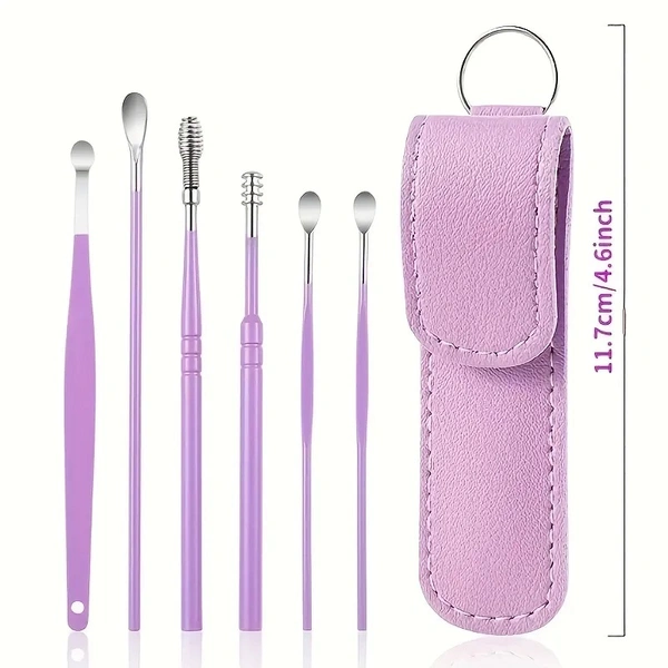 6317 6-IN-1 EAR WAX CLEANER- RESUABLE EAR CLEANING TOOLS LEATHER POUCH