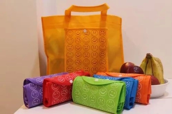 Folding Smiley Bags with Button and Good Material and Stitching